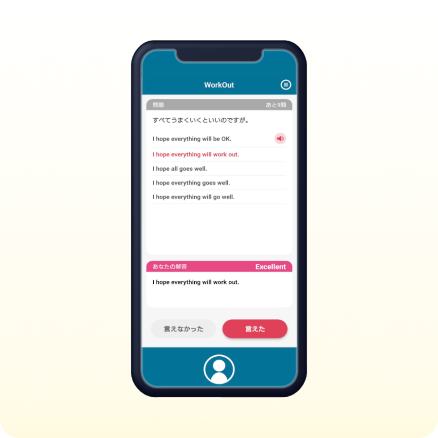 これまでのトレーニングでは、あらかじめ登録された正解フレーズとの一致で発話を判定していましたが、今回の新機能ではAIがあなたの英語を自然な表現として判断し、より正確にフィードバックします。